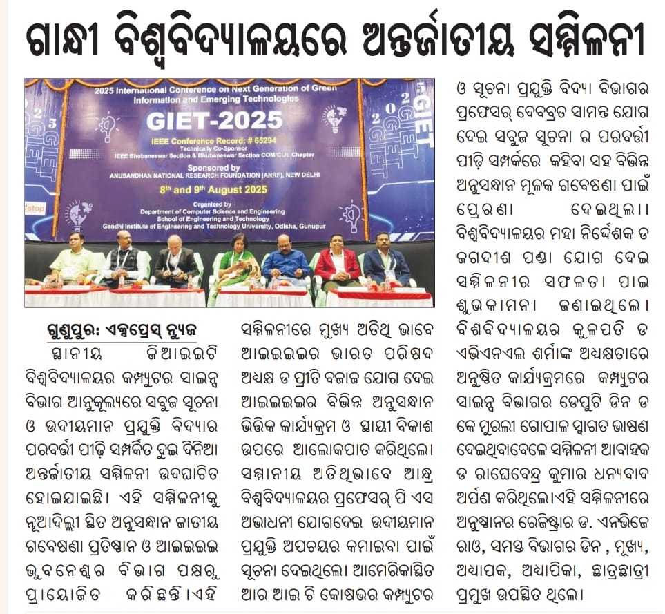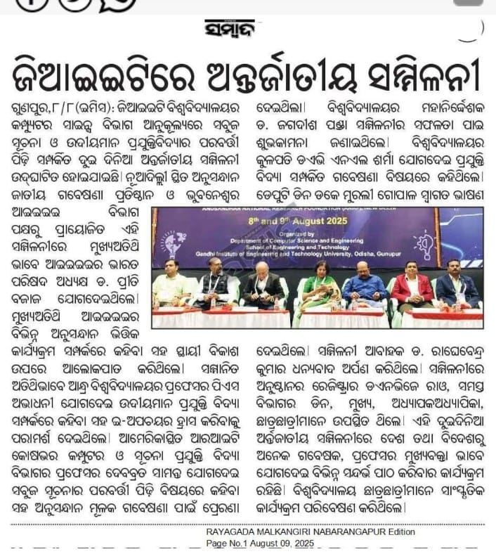 GANDHI INSTITUTE OF ENGINEERING AND TECHNOLOGY UNIVERSITY, ODISHA, GUNUPUR