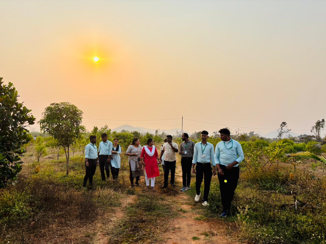 On 13th March 2026, students of the ELP-Commercial Vermicompost production unit, led by Dr. Rajeswari Das, Dr. K. Srikar, and Dr. Suman G. Sahu, conducted a field visit to the farm of Mr. Ajit Kumar Kola at Gumuda. Over the past two years, Mr. Kola has successfully transformed a wasteland into a productive plantation featuring 10,000 White Sandalwood (Santalum album) trees integrated with Apple Ber, Water Apple, Star Fruit, Guava, and Mango. The project stands as a model for Sustainable Soil Health Management, utilizing expert guidance from the School of Agriculture to reclaim soil fertility. By synchronizing drip irrigation and fertigation with the systematic application of vermicompost and vermiwash, the farm demonstrates a high-efficiency Integrated Nutrient Management (INM) system. This visit provided students with a practical synthesis of how organic amendments and precision technology can commercially revitalize degraded lands.
