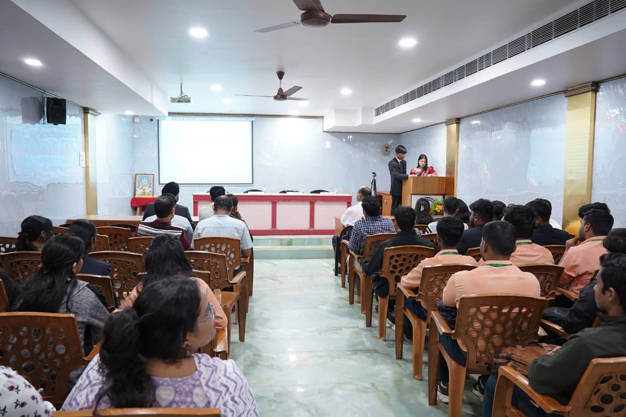 The event commenced with Registrar Prof. (Dr.) NVJ Rao addressing students and faculty. He urged them to prioritize skills and innovation, emphasizing industrial certifications in emerging technologies. “Improve your skills to become industry-ready,” he stressed, inspiring the audience to bridge academia and real-world demands.