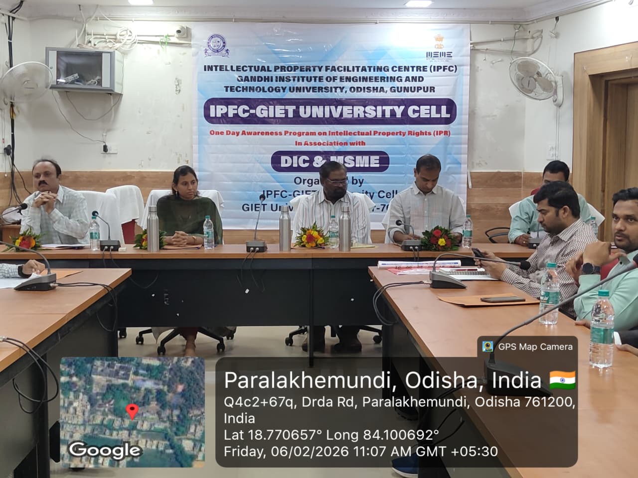 IPFC-GIET University Cell is organizing a one-day awareness program on Intellectual Property Rights (IPR) on 6th February 2026 at Parlakhemundi.